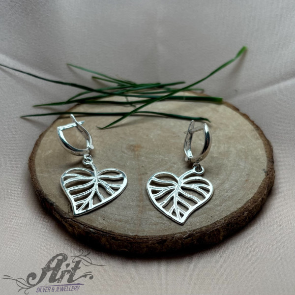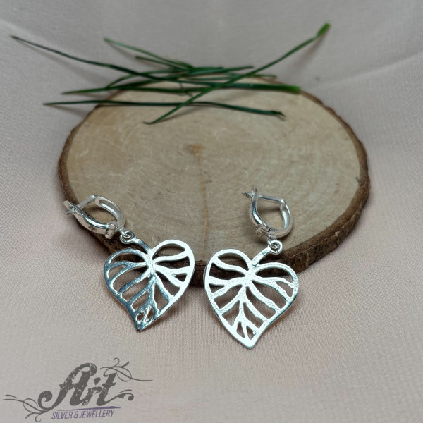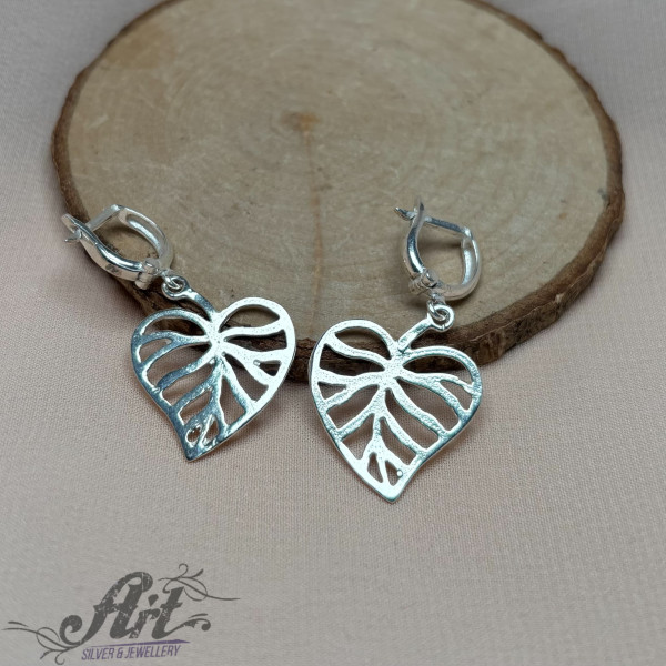 Дамски сребърен комплект "Листа".Ръчно изработени. Размер на гривната: 19 см.Размер на ко..